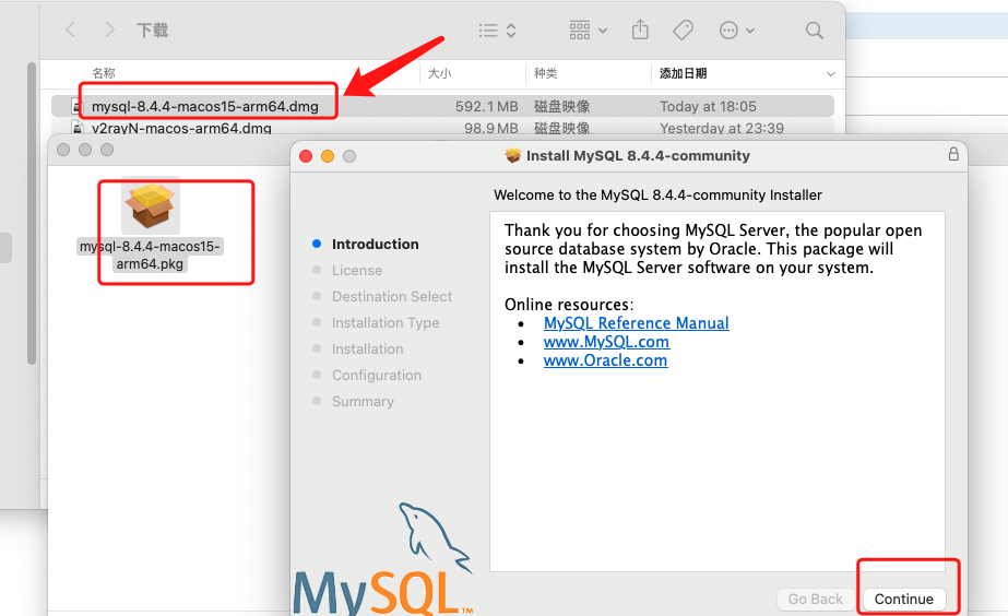- 下载好之后,双击DMG安装包,然后一路continue下去