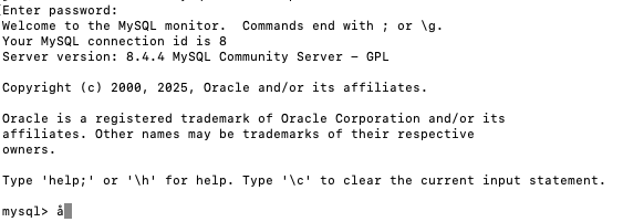 `mysql -u root -p