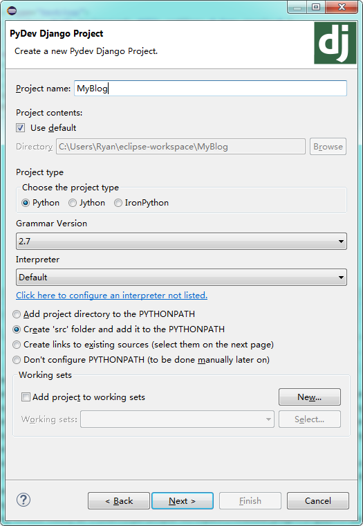 Django+Eclipse创建博客