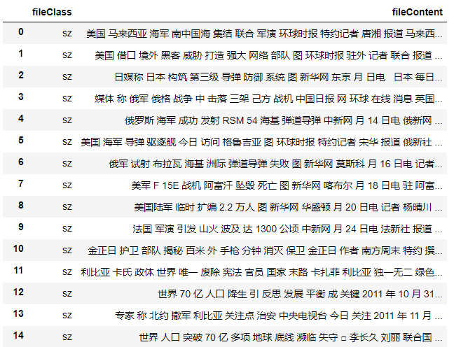 #进行遍历实现转码读取处理并对每条新闻进行切分