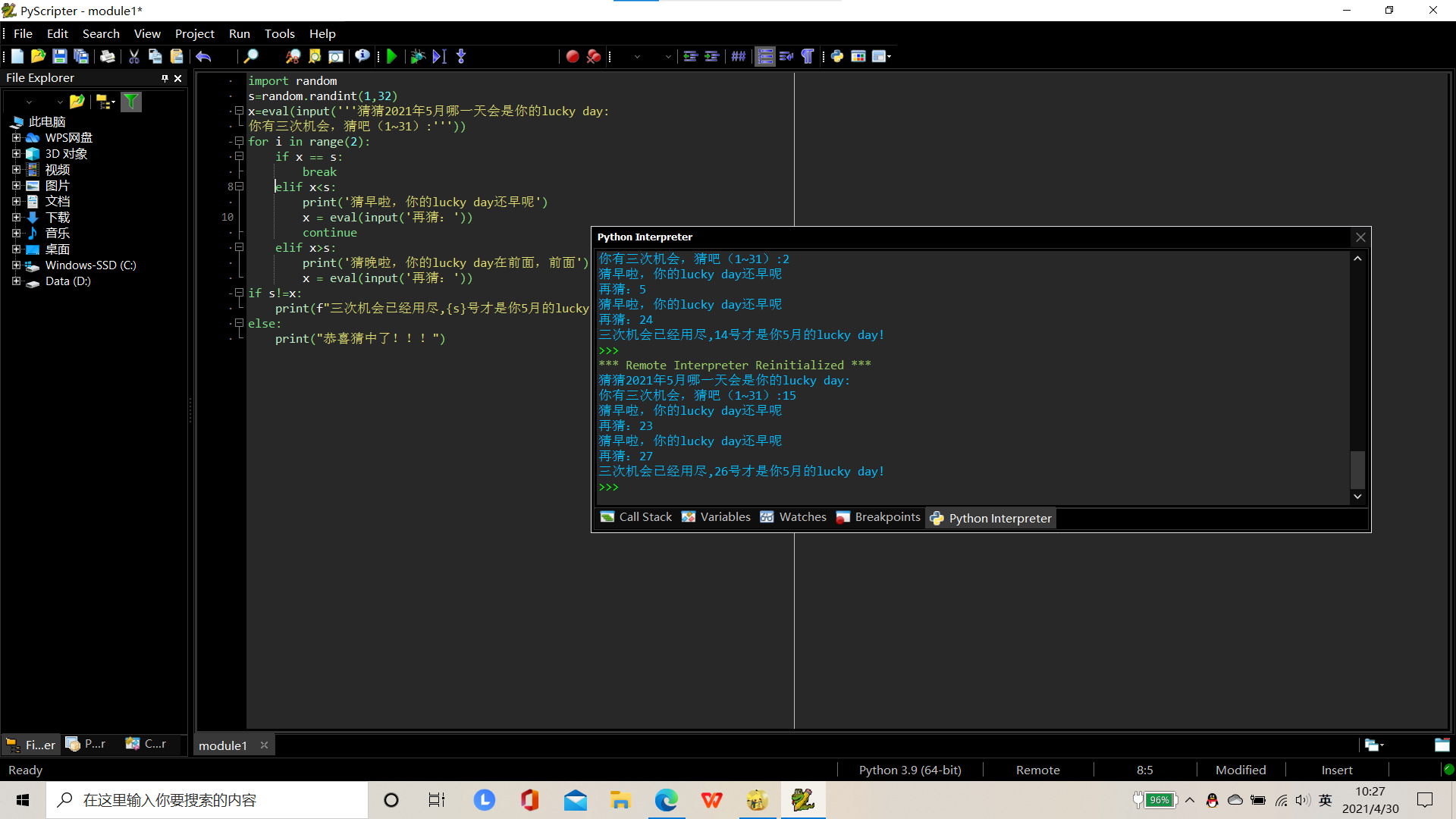 x=eval(input('''猜猜2021年5月哪一天会是你的lucky day: