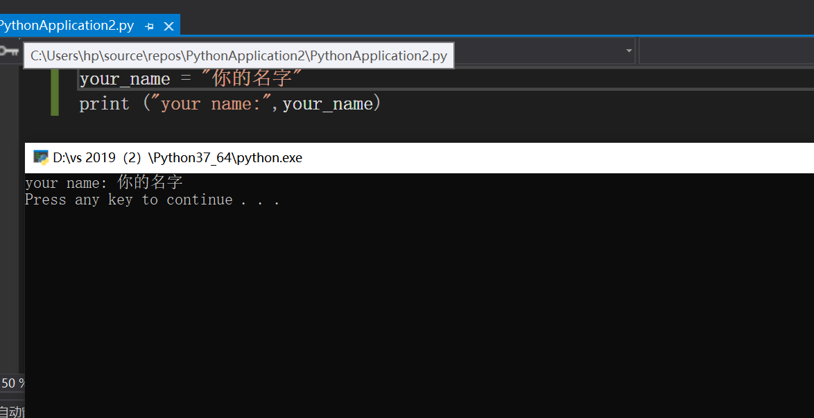 1 your_name = "你的名字" 2 print ("your name:",your_name)