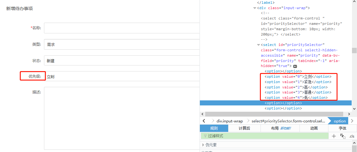 Select(driver.find_element_by_name("priority")).select_by_value("中")