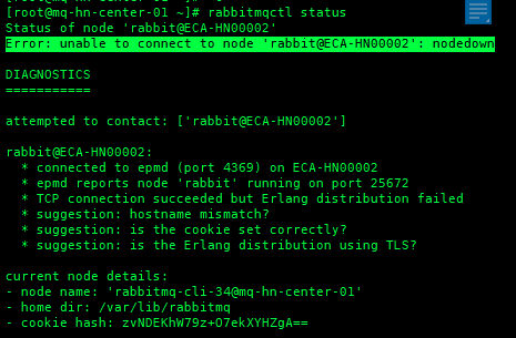 线上 rabbitmq 集群账号密码设置的过于简单,有一定的风险。在整改过程中发现,三台机器信息错乱,每台服务器执行rabbitmq 相关的命令就报错,Error: unable to connect to node 'rabbit@ECA-HN00002': nodedown。