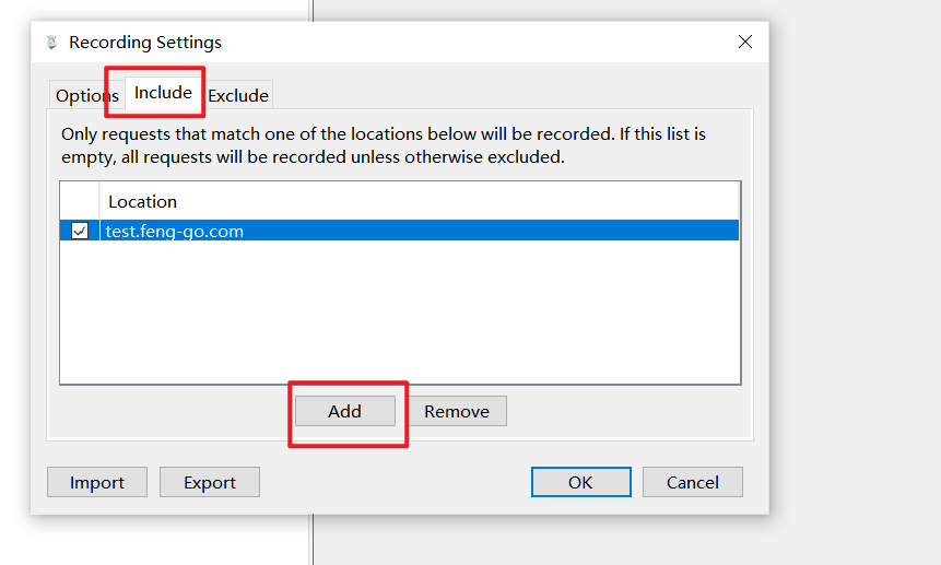 方法二:在Charles的菜单栏选择Proxy->Recording Setting,然后选择Include栏,选择添加一个项目,然后填入需要监控的协议,主机地址,端口号。这样就可以只截取目标网站的封包了。(适用长时间设置)如下图所示: