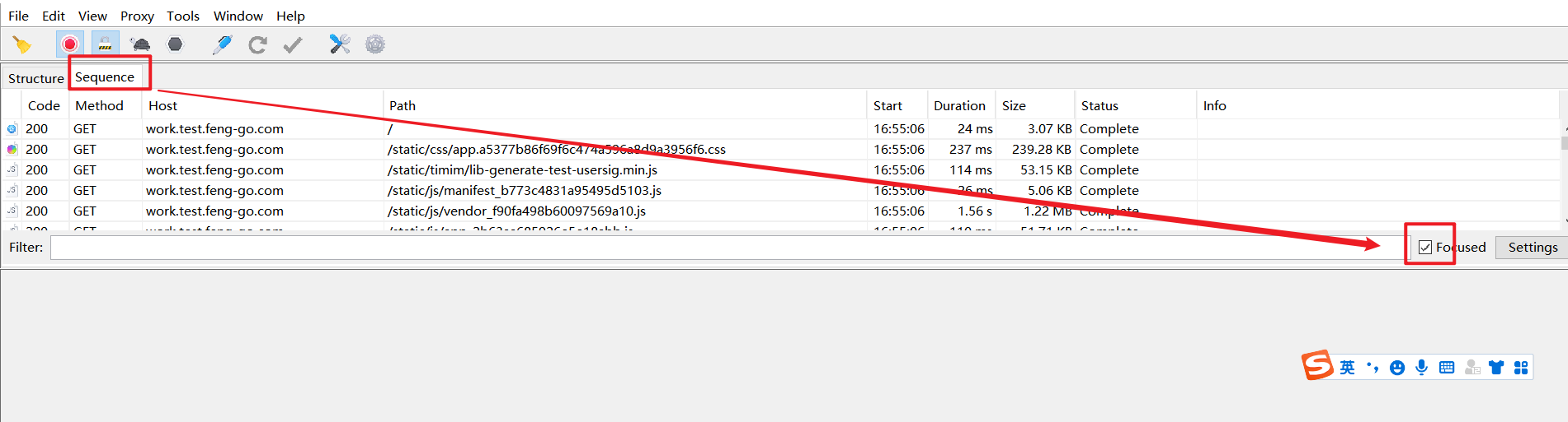 方法三:在想过滤的网络请求上右击,选择Focus,之后在Filter一栏勾选上Focused一项,(适用临时性设置)如下图所示: