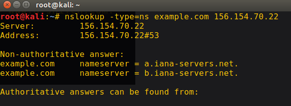 •nslookup -type=ns example.com 156.154.70.22