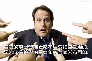 所以通常当我们梳理完自己的项目管理套路时,大家要记住自己的项目管理套路可不是只给自己用的,是为了给整个项目组和所有相关方用的,也意味着我们的项目管理套路越简单、越清晰、越明了,才能有更多的人愿意主动用我们的项目管理套路配合项目工作,这也是我认为非常重要的一点。