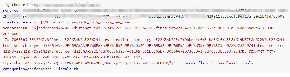 --only-categories=performance:该参数代表只采集该页面的性能数据,不加该参数则会采集全部数据,包括SEO、Accessibility等数据,该参数根据实际需求添加