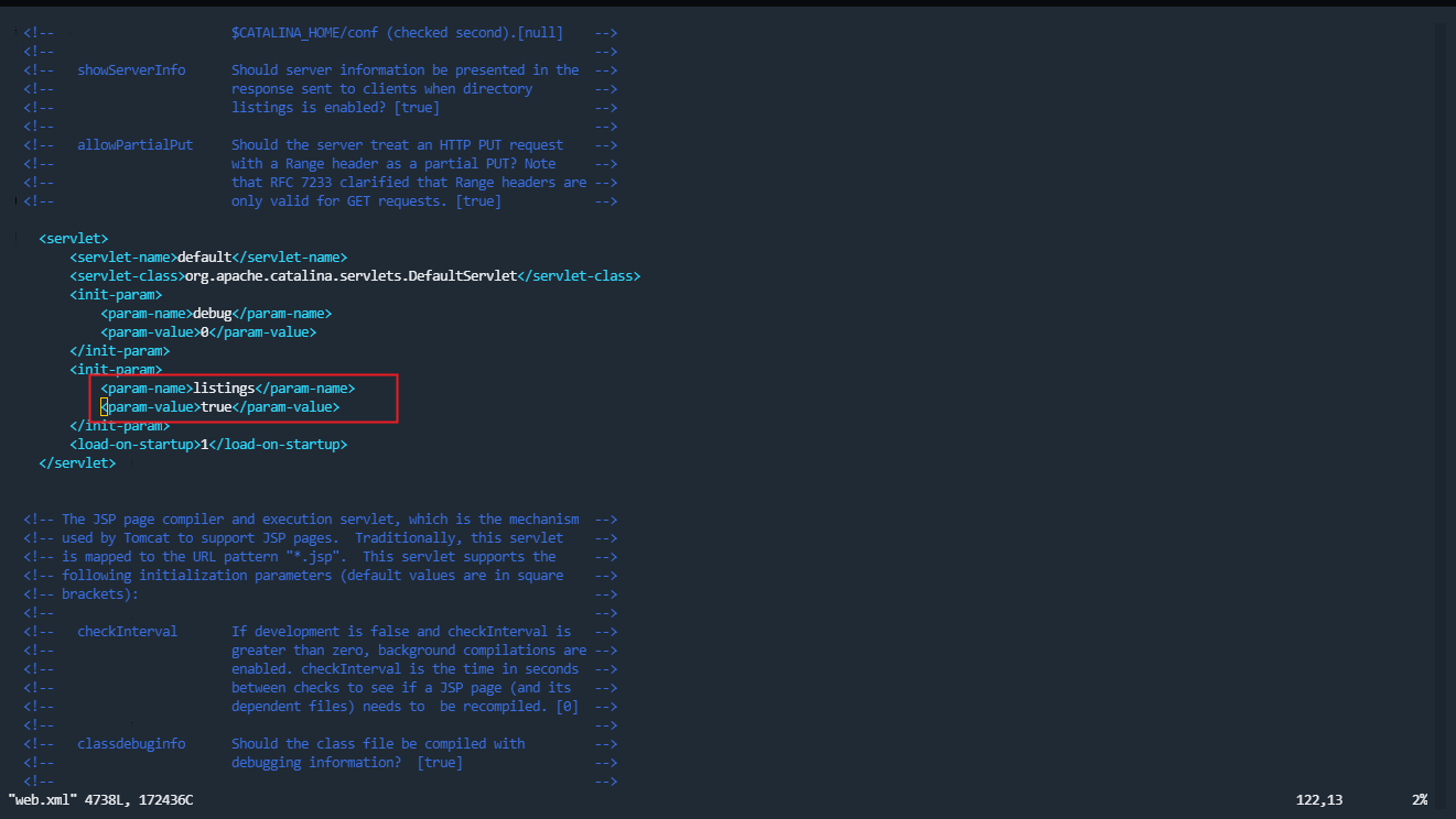 cd apache-tomcat-9.0.64/conf vim web.xml