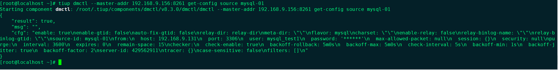 tiup dmctl --master-addr 192.168.9.156:8261 get-config source mysql-01