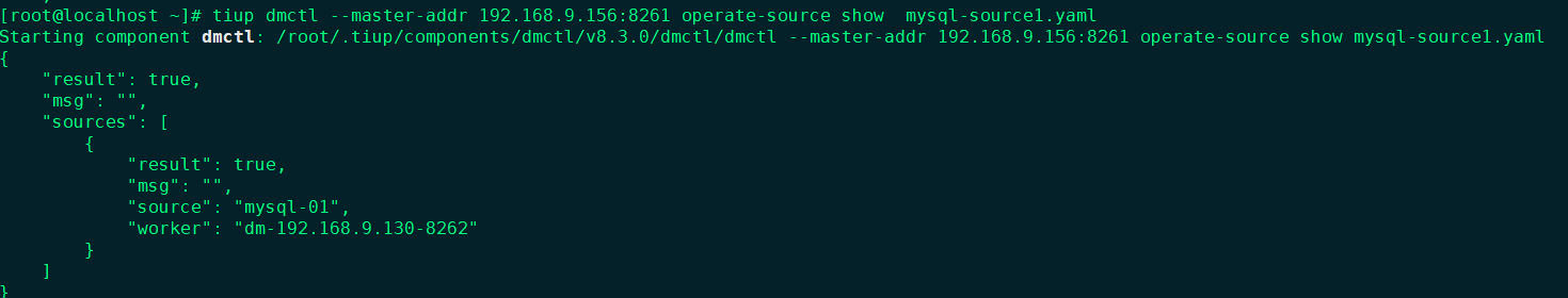 tiup dmctl --master-addr 192.168.9.156:8261 operate-source show mysql-source1.yaml