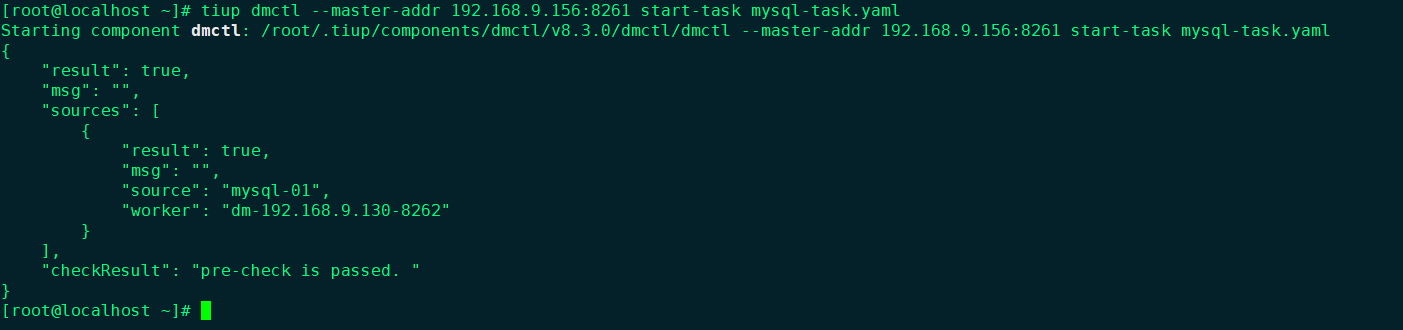 tiup dmctl --master-addr 192.168.9.156:8261 start-task mysql-task.yaml