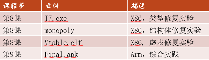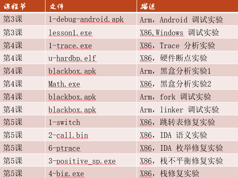 本课程样本包括: Windows EXE 、Android SO 库、Linux ELF,课程内容为通用知识,不局限于某种特定架构或系统。