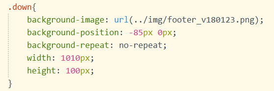 接下来在css中插入需要用到的组合图片,利用width和height设置一个图片所需要的宽和高,用background-position把小图片定位。再用background-repeat不让背景图象平铺,代码如下: