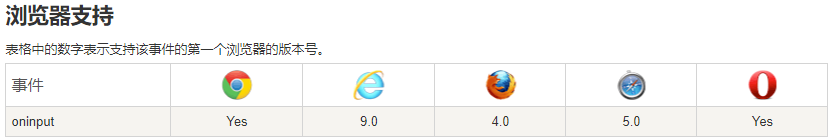 oninput 事件在 IE9 以下版本不支持,需要使用 IE 特有的 onpropertychange 事件替代,这个事件在用户界面改变或者使用脚本直接修改内容两种情况下都会触发,有以下几种情况: