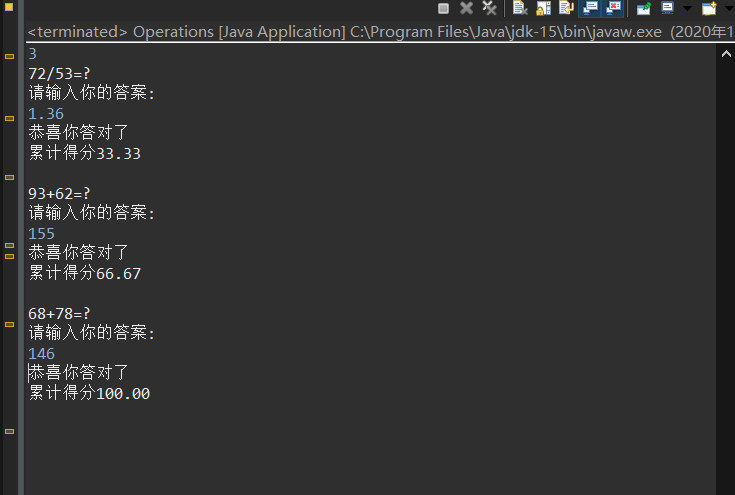 System.out.printf("抱歉你答错了,正确答案是:%.2f",answer);