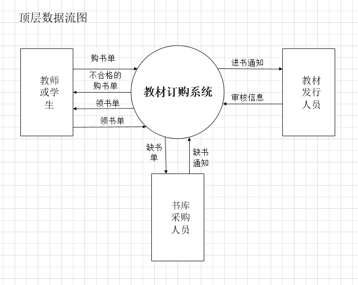 用户需求:本系统应该能添加新的教材订单,系统能通知采购人员采购图书,系统能给采购人员需要采购的图书的信息,系统还应该告诉教材发行人员有哪些图书新订购了。