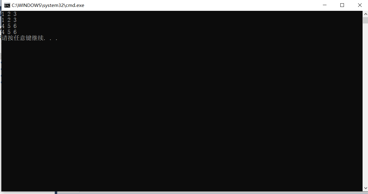 #include <stdio.h> const int LINE = 2; const int COL = 3; int main() { int a[LINE][COL] = {1,2,3,4,5,6}; int i,j; printf("通过数组名和下标直接访问数组元素:\n"); for(i=0; i<LINE; i++) for(j=0; j<COL; j++) printf("%d: %d\n", &a[i][j], a[i][j]); printf("通过地址间接访问数组元素:\n"); for(i=0; i<LINE; i++) for(j=0; j<COL; j++) printf("%d: %d\n", a[i]+j, *(a[i]+j)); printf("二维地址中a+i表示的地址:\n"); for(i=0; i<LINE; i++) printf("a + %d: %d\n", i, a+i); return 0; }