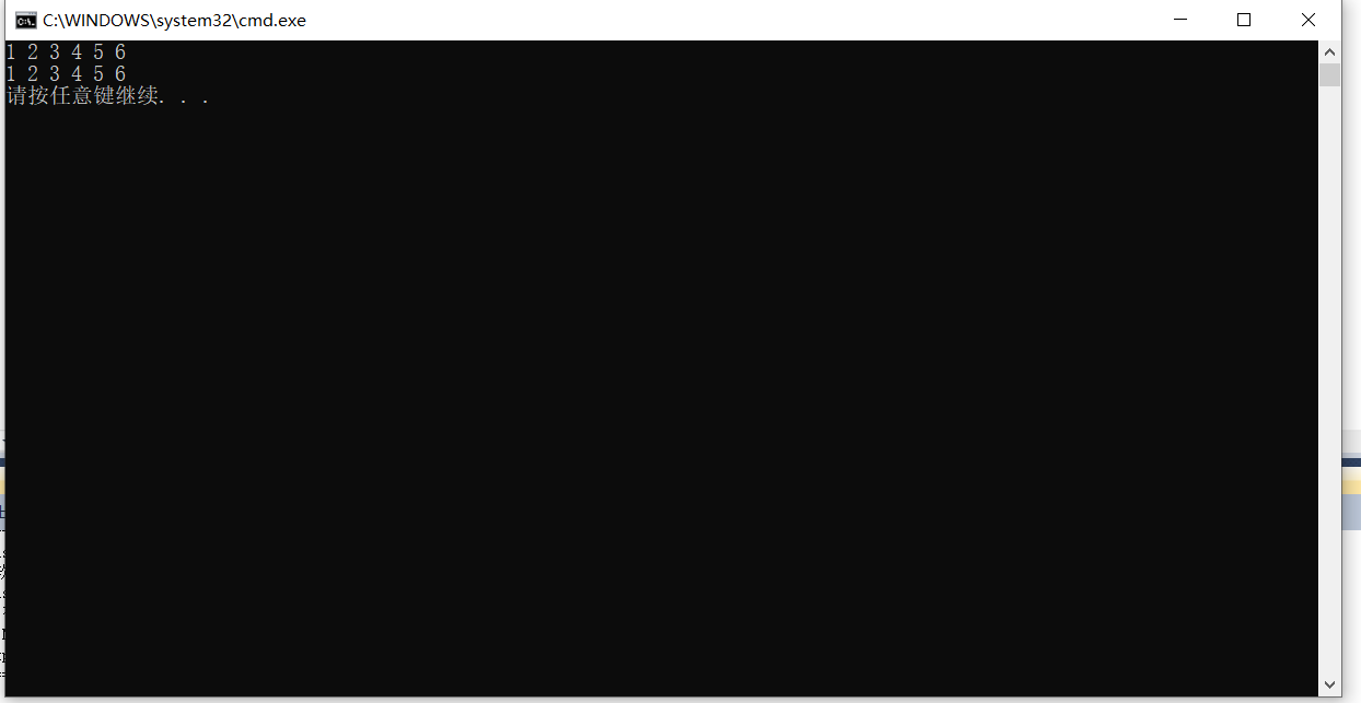 // 使用指针变量间接访问一维数组 #include <stdio.h> #include <stdlib.h> const int N=3; int main() { int a[N]; int *p,i; // 通过指针变量p,完成数组元素输入 for(p=a; p<a+N; p++) scanf("%d", p); // 过指针变量p,完成数组元素输出 for(p=a; p<a+N; p++) printf("%d ", *p); printf("\n"); p = a; //通过指针变量p,完成数组元素输入 for(i=0; i<N; i++) scanf("%d", p+i); // 通过指针变量p,完成数组元素输出 for(i=0; i<N; i++) printf("%d ", *(p+i)); printf("\n"); return 0; }