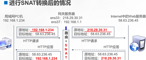 SNAT原理∶修改数据包的源地址。 SNAT转换前提条件∶