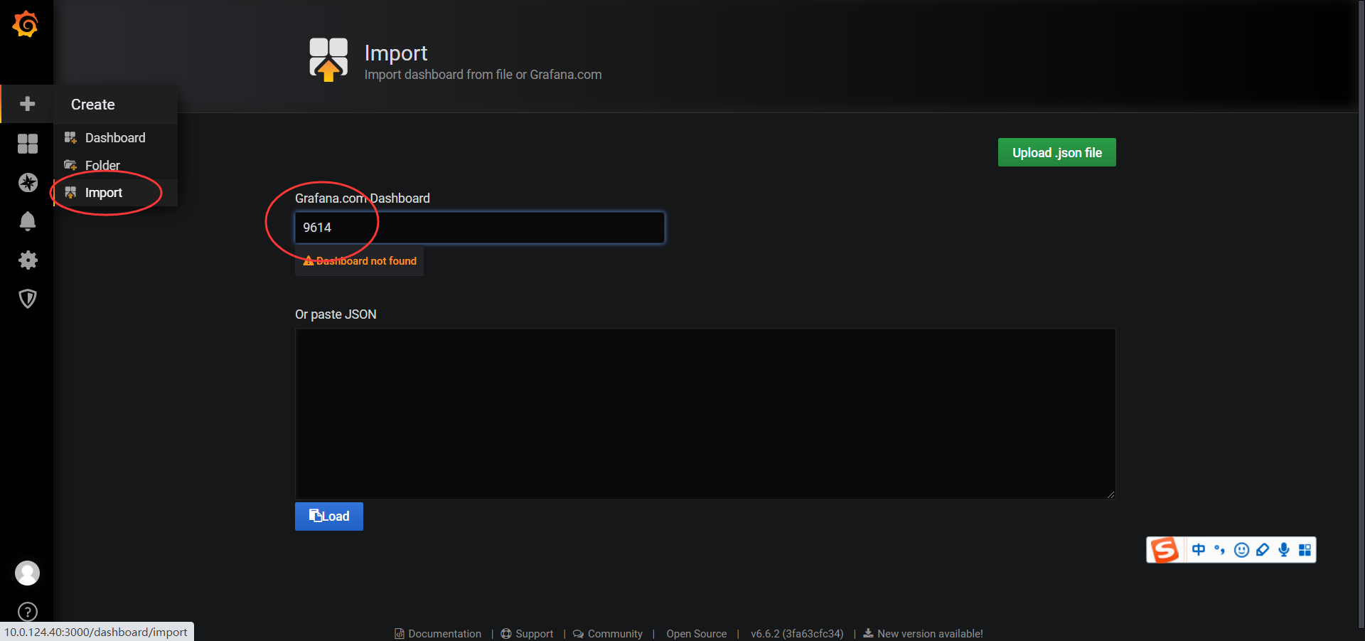 创建好数据源之后,就需要创建DashBoard(仪表盘),可以自定义,也可以导入你需要的仪表盘,官方提供了很多的可选仪表盘。