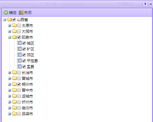 json 省级树 gxqy 县级id代码 checked true为选中,false为不选 //代码中具体强转方法需在网上参考其他方法,不宜通用。本文章只是简单梳理过程