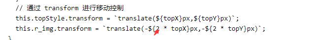 export default { data() { return { topStyle: { transform: "" }, r_img: {}, topShow: false, rShow: false, }; }, methods: { // 鼠标进入原图空间函数 enterHandler() { // 层罩及放大空间的显示 this.topShow = true; this.rShow = true; }, // 鼠标移动函数 moveHandler(event) { // let { clientWidth, clientHeight } = event.target;