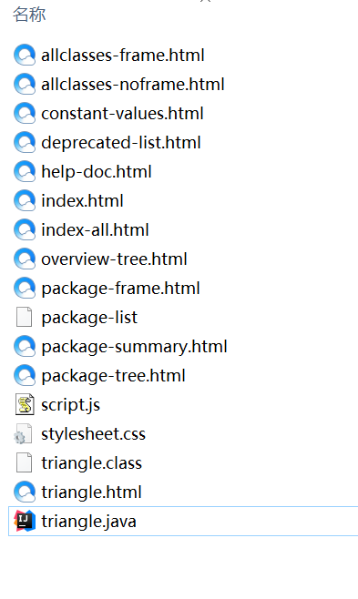 生成javadoc文档:命令行语句:javadoc -encoding UTF-8 -charset UTF-8 triangle.java