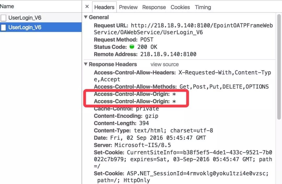 常见于.net后台(一般在web.config中配置了一次origin,然后代码中又手动添加了一次origin(比如代码手动设置了返回*))