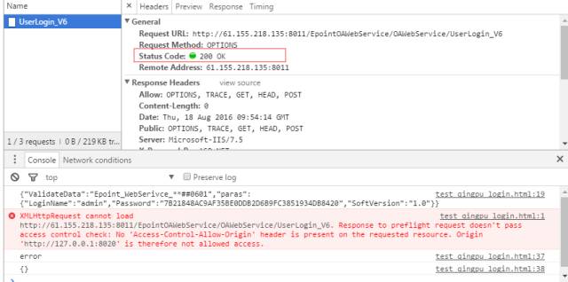 比如origin头部检查不匹配,比如少了一些头部的支持(如常见的X-Requested-With头部),然后服务端就会将response返回给前端,前端检测到这个后就触发XHR.onerror,导致前端控制台报错