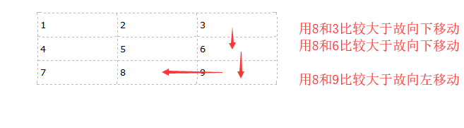 - 用key值与右上角的数值进行比较,如果key大于最右上角的值,那么该行没有key,查询指标应该向下跳一行;如果key小于最右上角的值,那么key可能存在在该行,列数向前-1