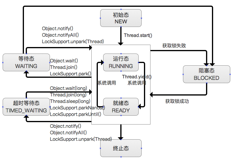 - 正在运行的线程调用Object.wait(),Thread.join(),LockSupport.part()就会进入等待状态。