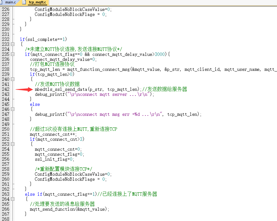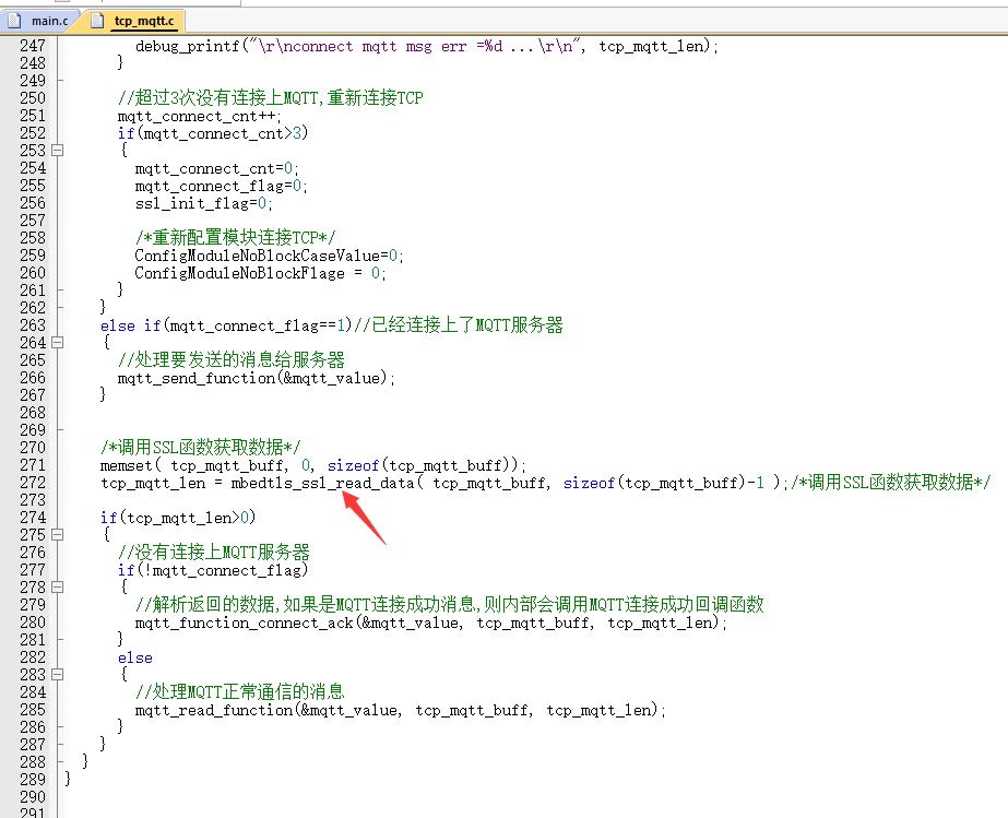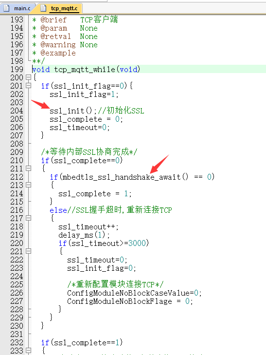 这个函数在咱TCP连接成功以后需要轮训调用, 这个函数内部自动实现的SSL, 只要完成了SSL, 便会返回0