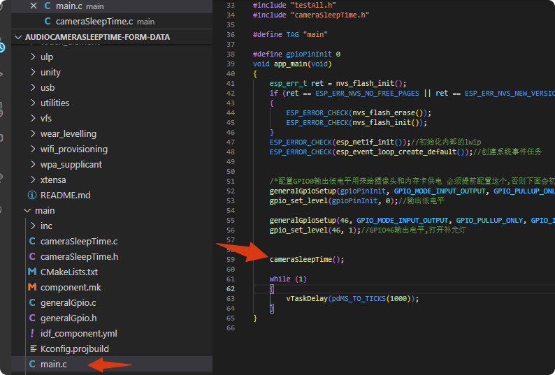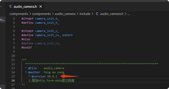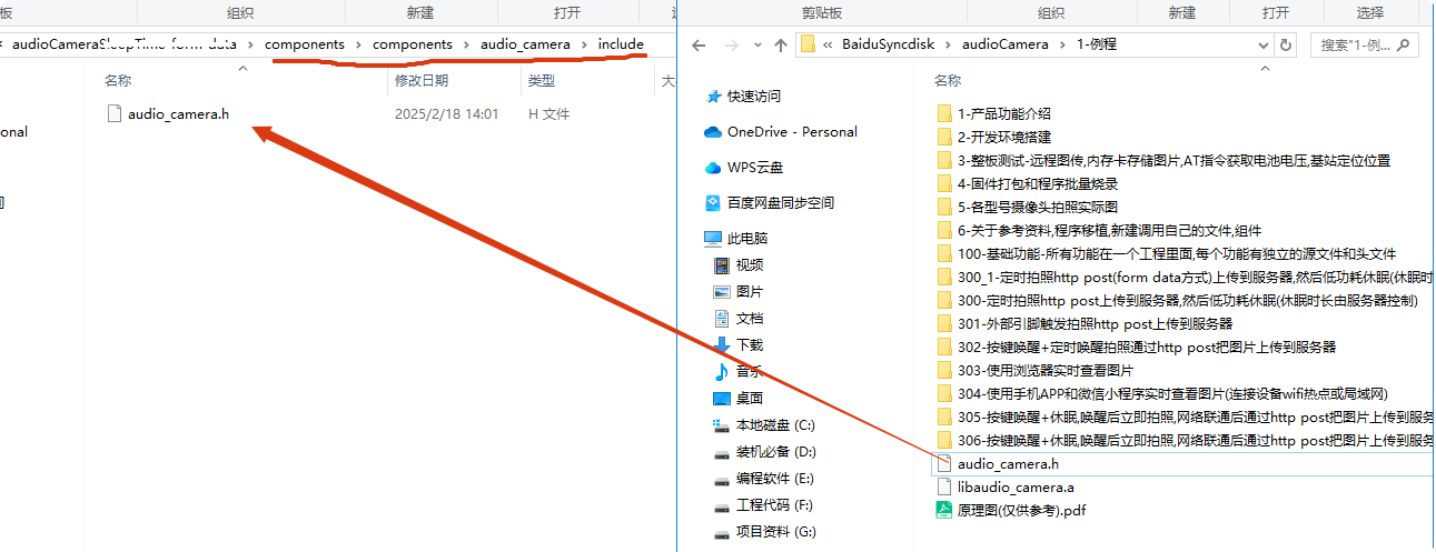 把例程文件夹里面的 audio_camera.h 文件拷贝到自己的工程(替换掉原先的)
