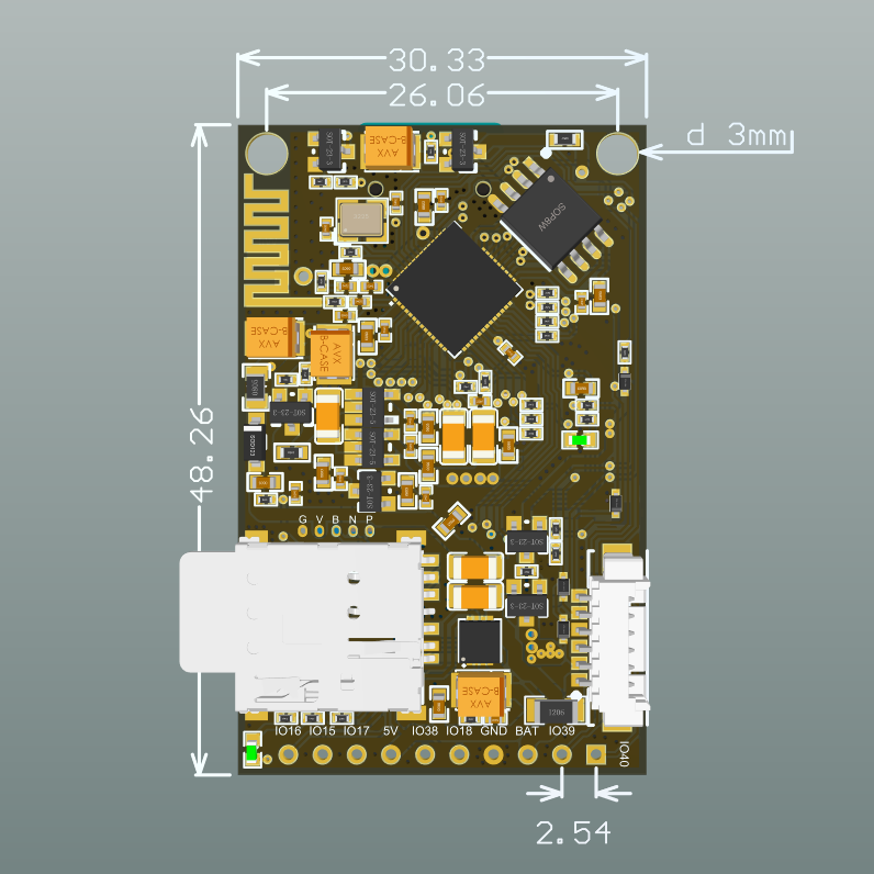 5, 预留GPIO15,16,17,18,38,39,40 这7个GPIO可作为通用GPIO,串口TTL, IIC, SPI, 休眠唤醒, PWM等;