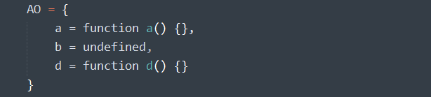 2. 找形参和变量声明,将变量和形参名作为AO对象的属性名,值为undfined