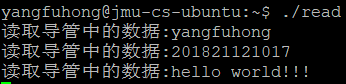 同时开启两个程序,并且让上面三个程序同时运行起来,然后从左边的write写入一些信息,read端能够同步输出信息。