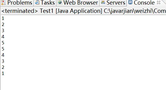package com.dq.homework; public class test1 { /** * @param args */ public static void main(String[] args) { // TODO Auto-generated method stub int a[]={1,2,3,4,5}; for (int i = 0; i < a.length; i++) { System.out.println(a[i]); } for (int j = 4; j >0; j--) { System.out.println(a[j]); } System.out.println(a[0]); } }