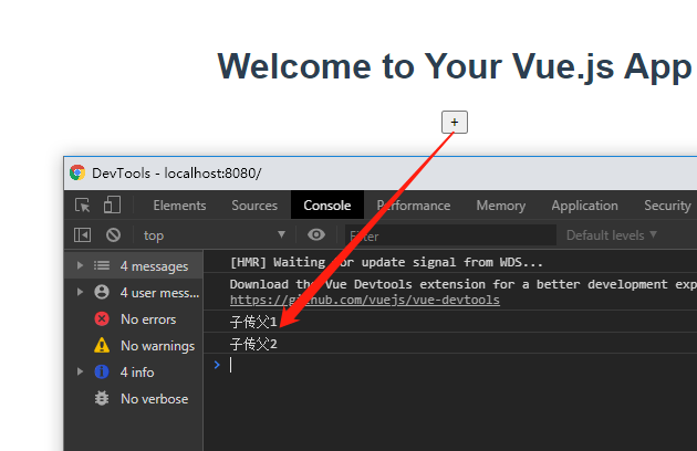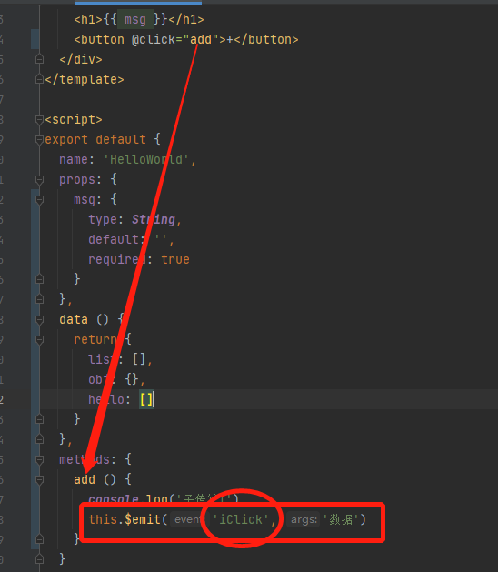 3、子组件向父组件传递数据,通过自定义事件$emit。