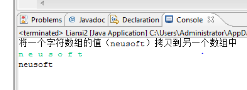 System.out.println("将一个字符数组的值(neusoft)拷贝到另一个数组中");