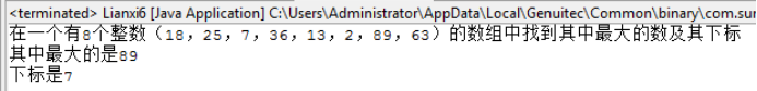 System.out.println("在一个有8个整数(18,25,7,36,13,2,89,63)的数组中找到其中最大的数及其下标");