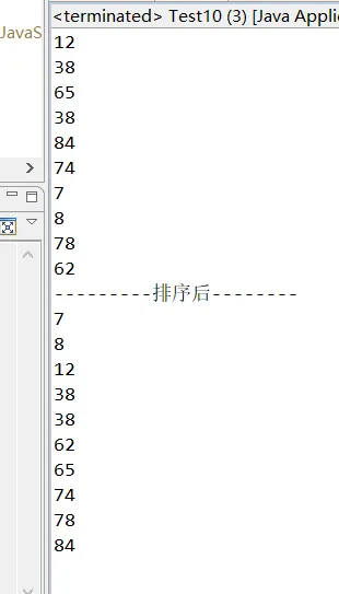 10、生成一个长度为10的随机整数数组(每个数都是0-100之间),输出,排序后,再输出