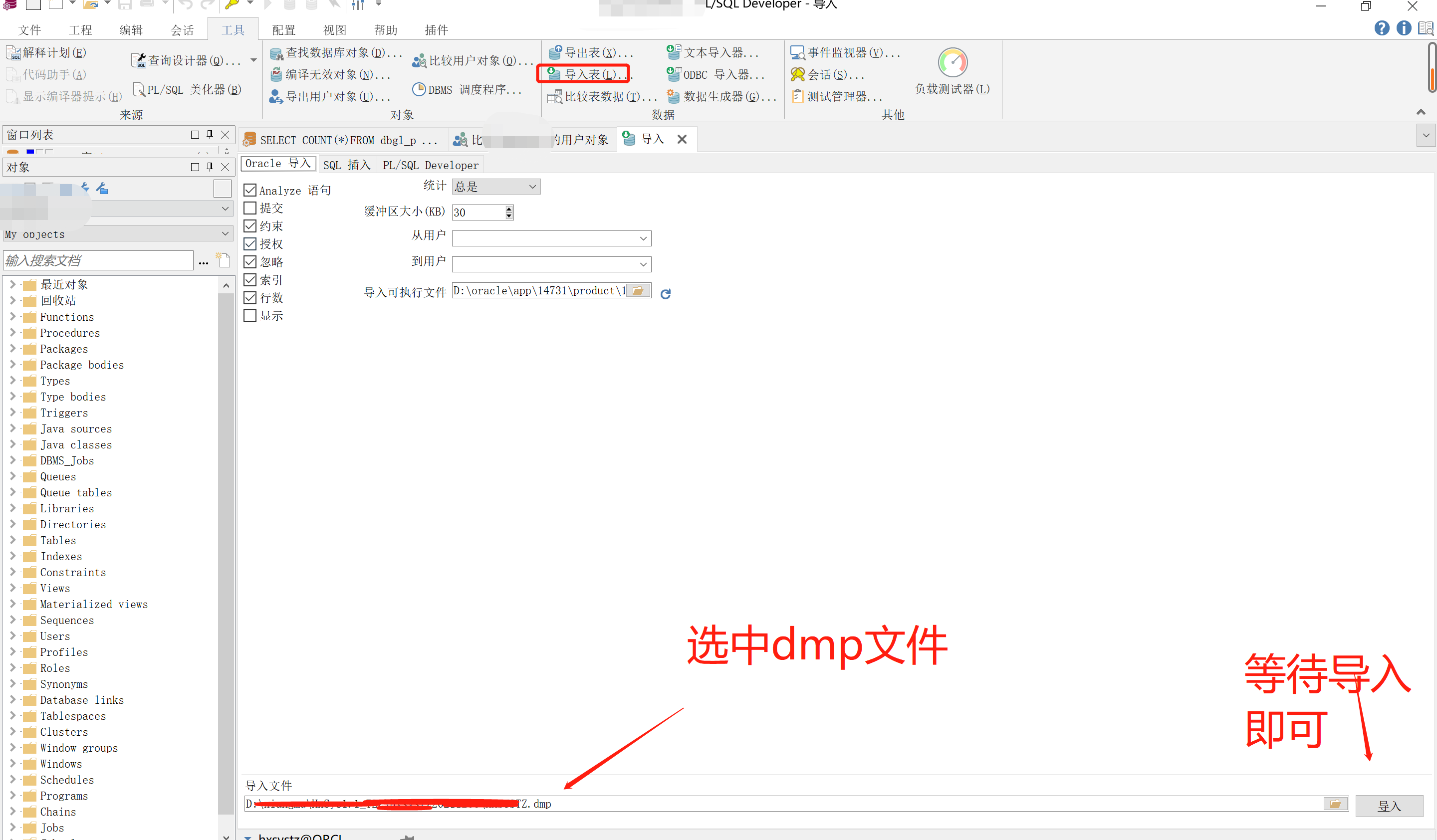 oracle导入并覆盖原来的表和数据