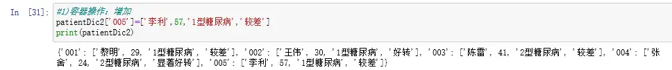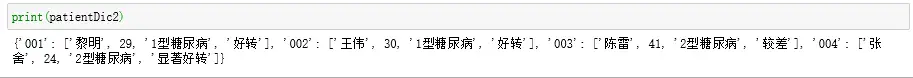 定义字典,将病人编号和病人姓名关联成为映射关系