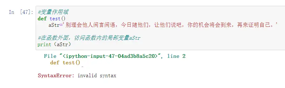 定义在函数内部的变量拥有一个局部作用域,定义在函数外的拥有全局作用域。 局部变量只能在其被声明的函数内部访问,而全局变量可以在整个程序范围内访问。