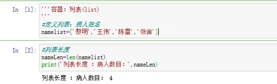先定义病人姓名,查看列表长度