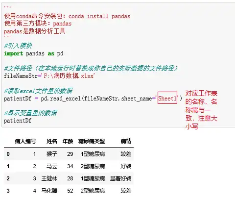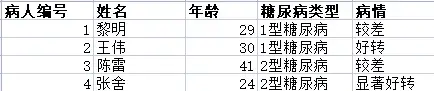 将上面Excel表中病人数据存储