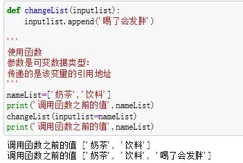 当函数参数为可变数据类型(列表、集合、字典)如果我们定义的是改变列表的值,传递的是该变量的引用地址,会改变数据结果。