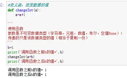 当函数参数为不可变数据类型(字符串、数字,元祖,布尔,空值None),如果我们定义的是改变列表的值,传递的只是该数据类型的值,不会改变数据结果。